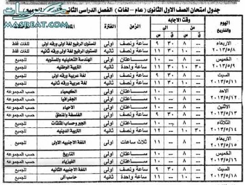 View جدول امتحانات الثانويه العامه الصف الاول Pics